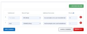 There are many types of records that the DNS system maintains. The important record types for the SeekaHost Email Service are MX and CNAME records.