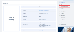 Finally, you can view the login information by going to “Accounts manage” on the right side of your blog table. And you can sign into your blog by clicking the “site login” option.