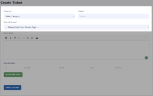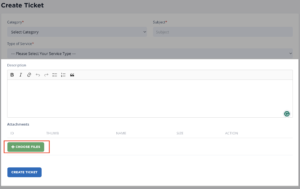 In the description area, please give us as much information as possible regarding the issue you’re facing. The more details you provide, the faster our support team can assist you. Attach any relevant documents or screenshots to help us understand your problem better.