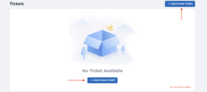 On the Ticket page, you will be able to see various options to manage your tickets! Since you want to open a ticket, click on the blue button “Create New Ticket” button which is in the top right corner. Then you will be redirected to a form and you need to fill in the blanks with the required details.