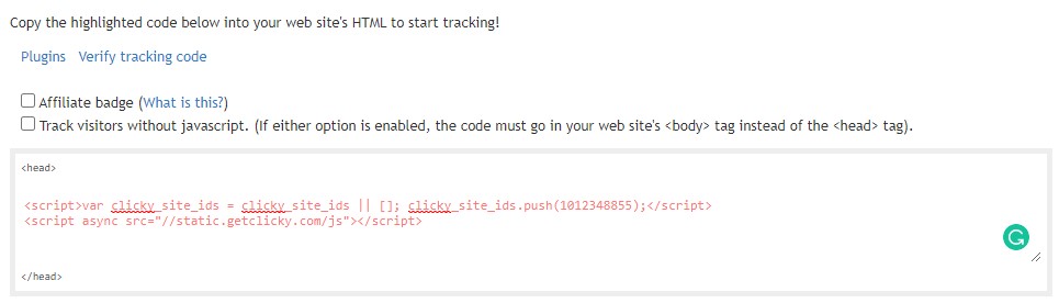 To use Clicky the tracking code has to be implemented on the respective website/blog header section: